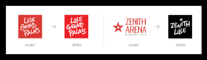 En rassemblant les 2 structures par le design. En repartant de l’identité Lille Grand Palais, nous avons affiné la typographie, la couleur et nous les avons appliquées au Zenith de Lille.